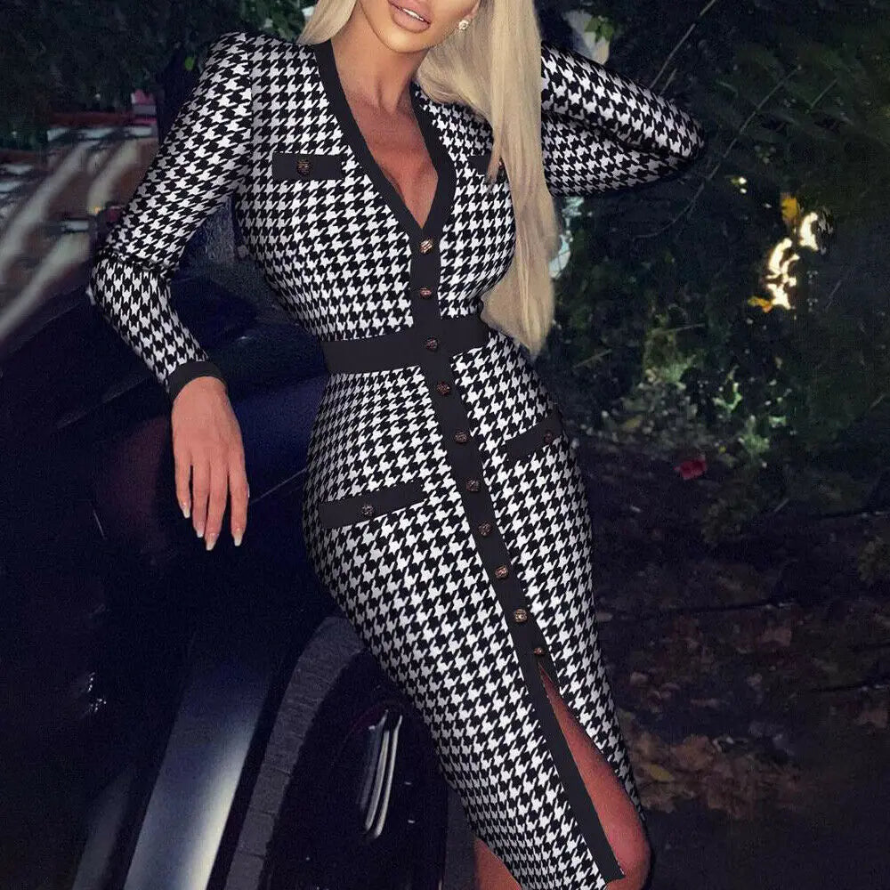 Fall clothing fashion long-sleeve V-neck bodycon bag hip dress vintage dress elegant casual dresses long dress women